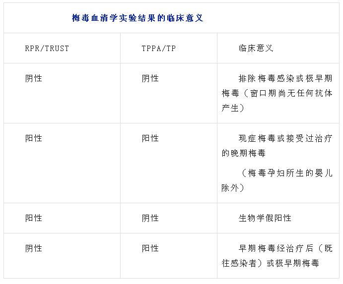總之,梅毒抗體陽性并不一定是梅毒,TRUST/RPR和 TPPA/TP雙陽才表示當前感染梅毒,其他結(jié)果需要根據(jù)情況進行具體分析。