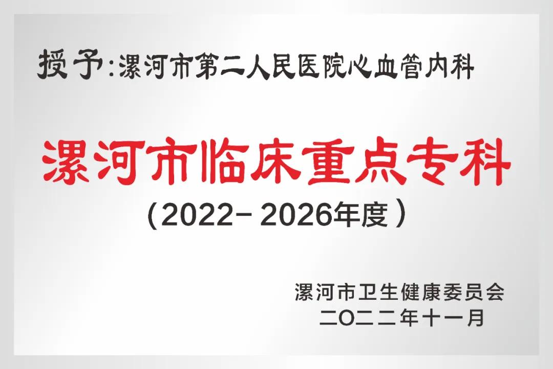 科室是國家級胸痛中心、國家心血管疾病臨床研究中心科研基地、河南省高血壓防治中心成員單位、漯河市臨床重點???、漯河市心衰聯(lián)盟成員單位等專業(yè)殊榮,先后榮獲漯河市青年五四獎?wù)录w、市衛(wèi)健系統(tǒng)先進(jìn)集體、市衛(wèi)健系統(tǒng)優(yōu)秀醫(yī)師團(tuán)隊、市衛(wèi)健系統(tǒng)優(yōu)秀護(hù)理團(tuán)隊等榮譽稱號。(伊獻(xiàn)麗)