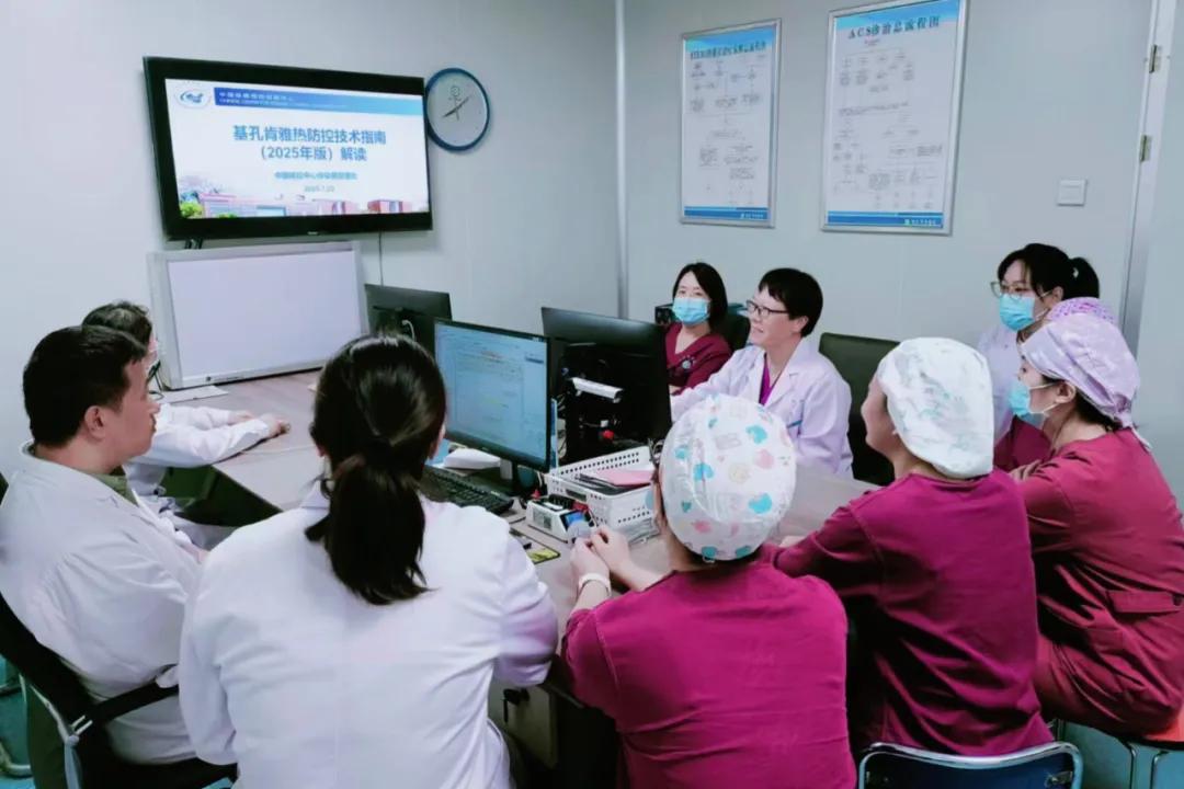 培訓(xùn)會上,感染疾控科主任袁菲首先講解了基孔肯雅熱與登革熱診療知識,重點(diǎn)介紹其診斷依據(jù)、臨床表現(xiàn)、病史、實(shí)驗室檢查及治療原則,并針對二者異同展開對比分析;隨后詳細(xì)講解了基孔肯雅熱及登革熱相關(guān)防控知識及規(guī)范上報流程;最后針對防控策略,袁菲強(qiáng)調(diào)重點(diǎn)在于抓好“三個環(huán)節(jié)”:一是嚴(yán)格控制傳染源,疑似及確診病例需在24小時內(nèi)規(guī)范報告,急性期病例防蚊隔離期不少于7天,確診病例原則上需住院治療;二是全力切斷傳播途徑,強(qiáng)化蚊帳、紗窗等防蚊設(shè)施配備,全面清理蚊蟲孳生地,降低蚊蟲密度;三是有效保護(hù)易感人群,加強(qiáng)健康宣教,做好日常防蚊滅蚊工作。