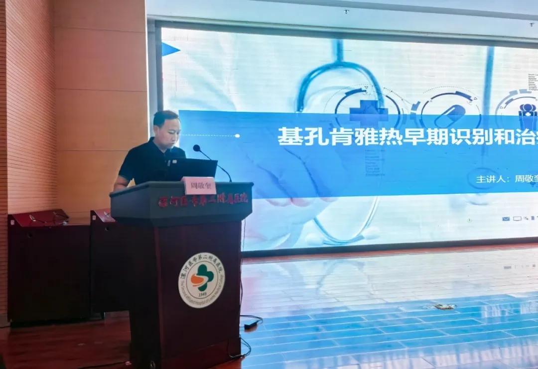 本次培訓(xùn)邀請了呼吸內(nèi)科周敬奎主任進(jìn)行授課,內(nèi)容涵蓋基孔肯雅熱和登革熱的流行病學(xué)特征、臨床表現(xiàn)、診斷標(biāo)準(zhǔn)、治療原則以及防控措施等方面。周主任結(jié)合實(shí)際案例,對兩種疾病的鑒別診斷進(jìn)行了詳細(xì)講解。
