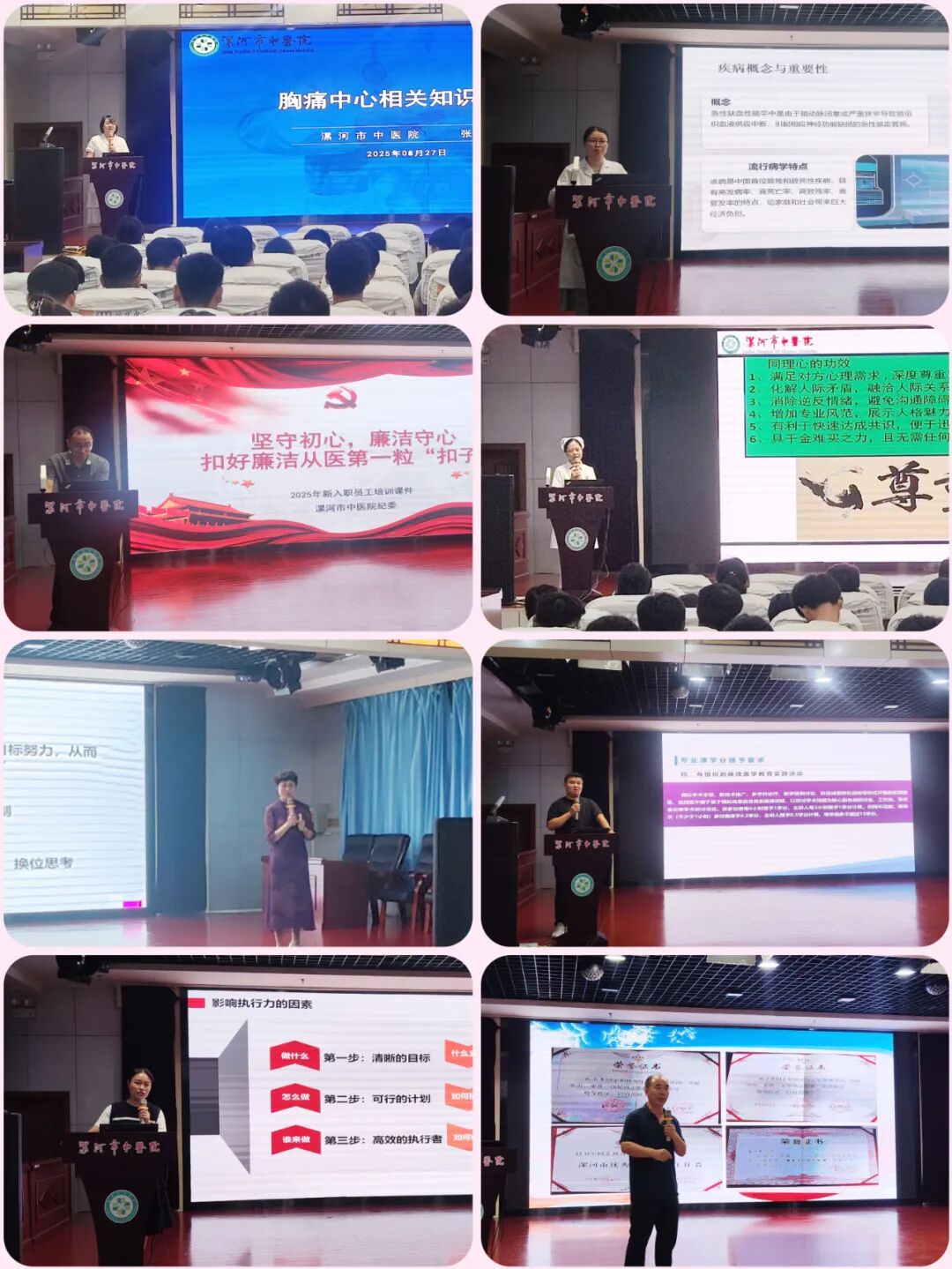 為幫助新職工快速融入醫(yī)院大家庭、筑牢職業(yè)根基、明晰發(fā)展方向,漯河市中醫(yī)院于8月26日至28日,精心組織開(kāi)展了2025年新職工崗前培訓(xùn),為2025年新職工、中醫(yī)助理全科規(guī)培學(xué)員及見(jiàn)習(xí)人員送上了一場(chǎng)“沉浸式”成長(zhǎng)盛宴。院黨委書(shū)記、院長(zhǎng)楊軼攜領(lǐng)導(dǎo)班子成員出席開(kāi)班儀式,儀式由院黨委副書(shū)記、副院長(zhǎng)張文吉主持,為新職工的職場(chǎng)征途點(diǎn)亮了第一盞明燈。