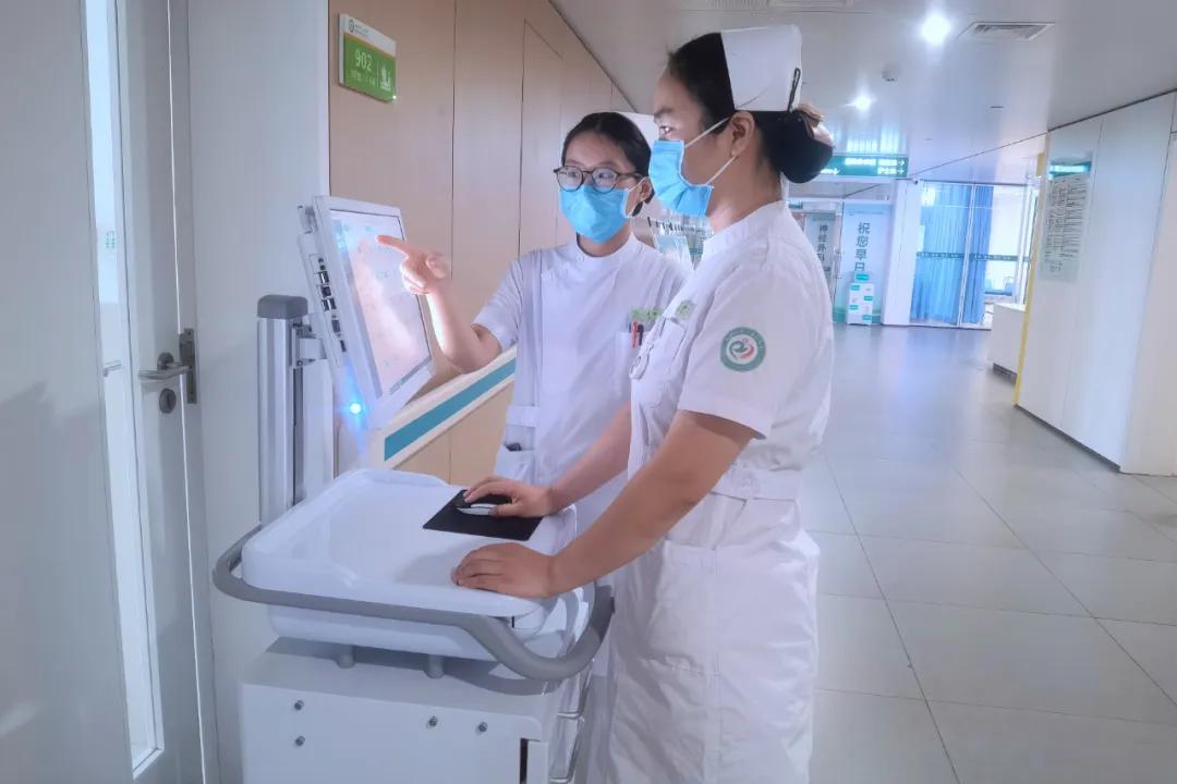 一臺(tái)臺(tái)新型移動(dòng)“智能護(hù)理車”穿梭在病房間,不同于以往笨重的手推車,它集治療、護(hù)理、電腦于一體,既可以放置病人藥物與基本護(hù)理器材等滿足日常護(hù)理需求,又實(shí)現(xiàn)了護(hù)理人員隨時(shí)隨地查看患者信息、治療項(xiàng)目、書(shū)寫(xiě)護(hù)理文書(shū)等多項(xiàng)功能,省時(shí)省力、便捷高效,有效減輕了護(hù)士負(fù)擔(dān),真正做到了把時(shí)間還給護(hù)士,把護(hù)士還給病人。