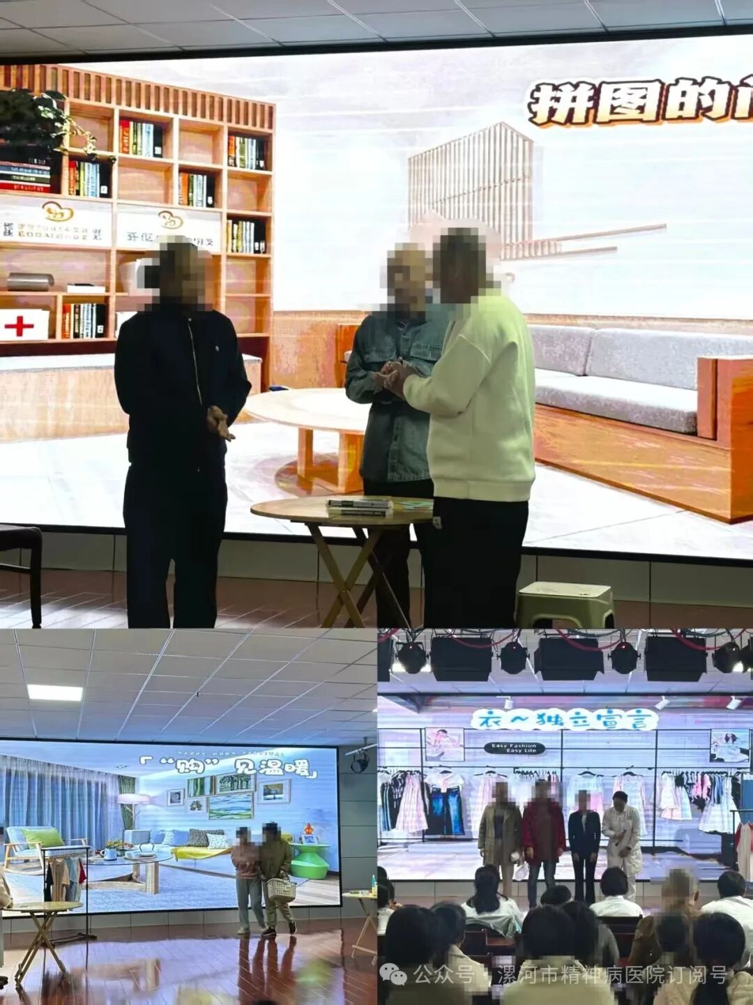 本次大賽共有來(lái)自各個(gè)病區(qū)的6支患者代表隊(duì)參賽,通過(guò)抽簽確定出場(chǎng)順序,各參賽隊(duì)伍圍繞大賽主題展開(kāi)角逐。心身醫(yī)學(xué)科《“借”與“不借”的友好藝術(shù)》、精一科《鄰里的微光》、精四科《“購(gòu)”見(jiàn)溫暖》、精六科《拼圖的問(wèn)候》等作品中,展現(xiàn)出了精神障礙患者扎實(shí)的康復(fù)訓(xùn)練成果。評(píng)委從表達(dá)、協(xié)作、溝通技巧等進(jìn)行綜合評(píng)分,分別評(píng)出一等獎(jiǎng)、二等獎(jiǎng)、三等級(jí)及優(yōu)秀獎(jiǎng)。