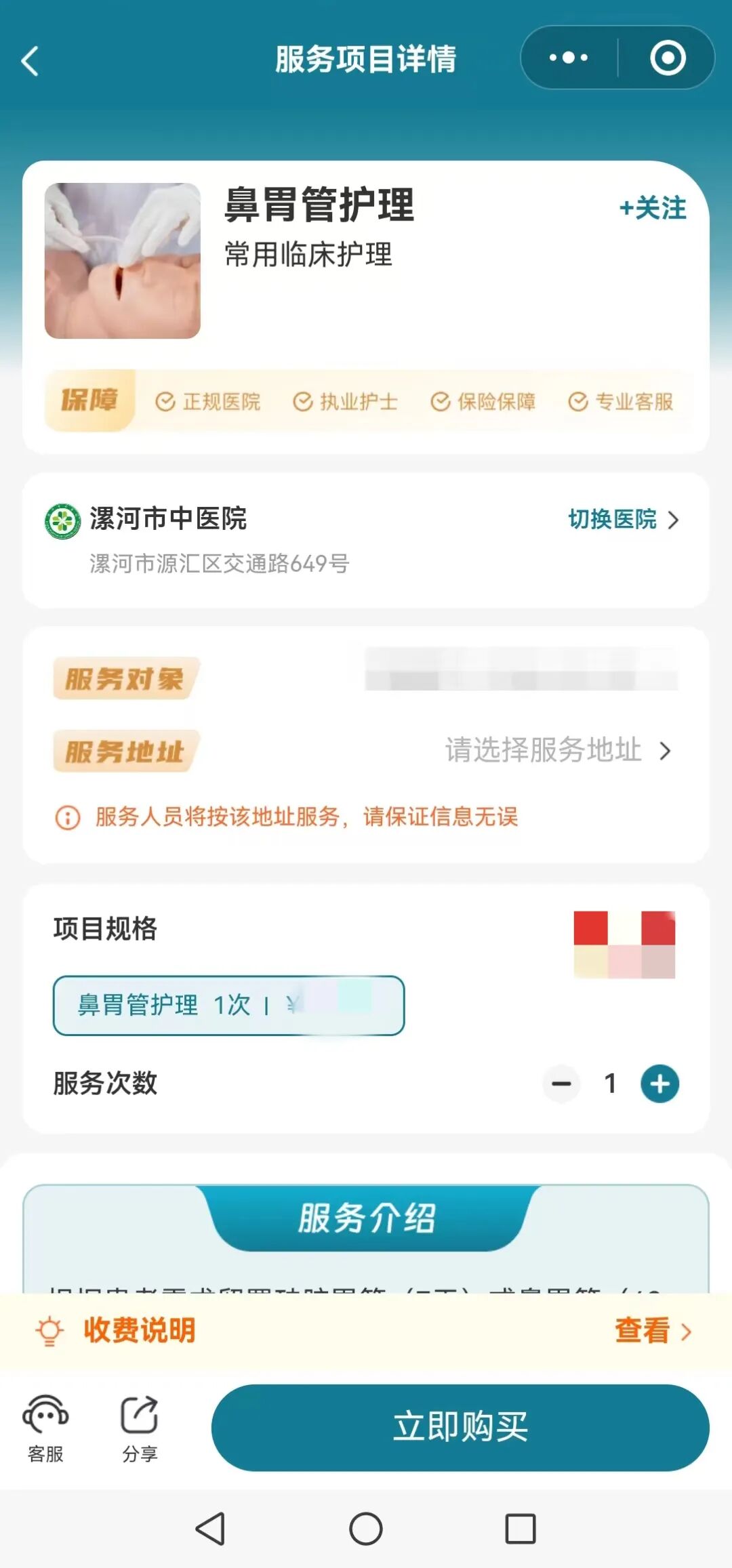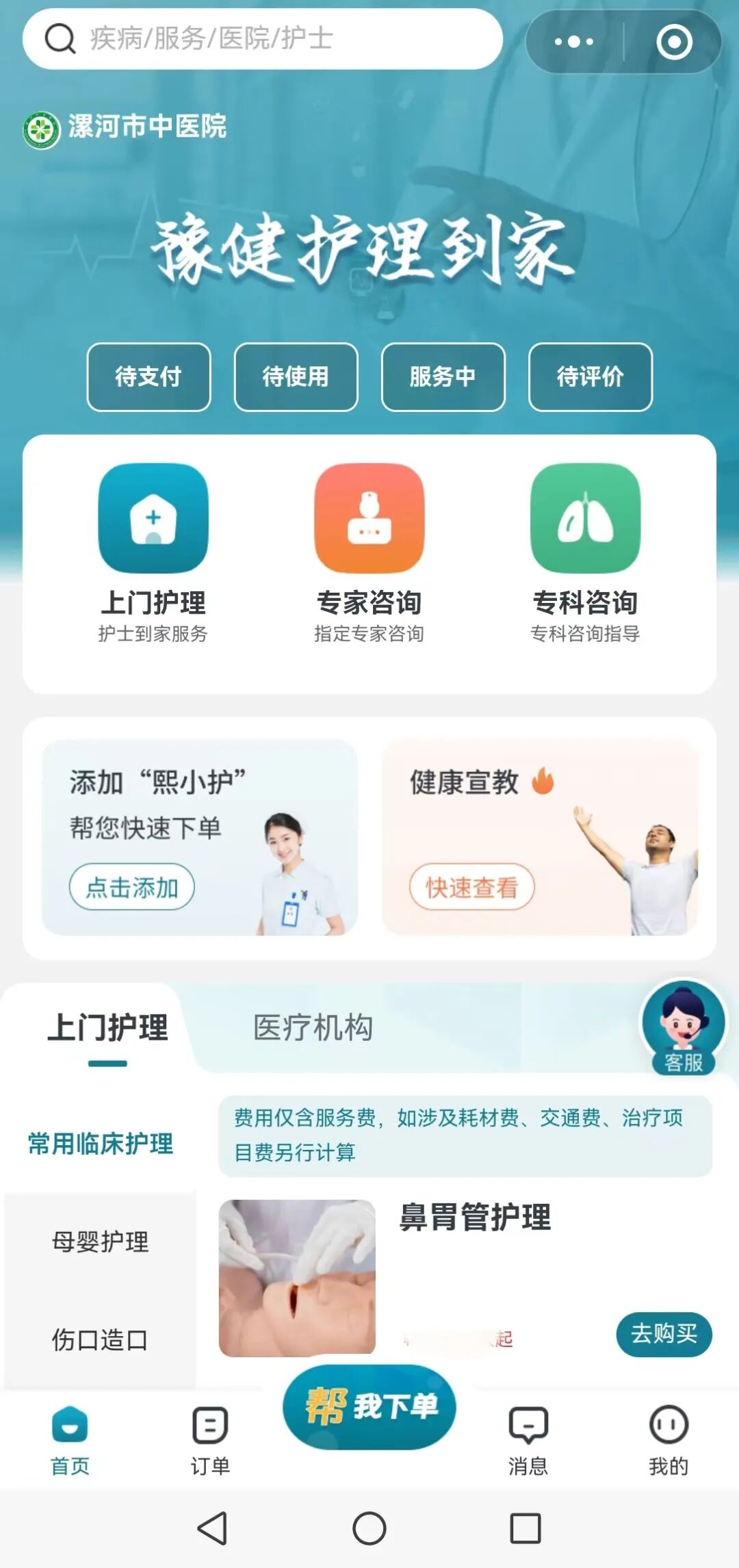選擇服務(wù): 根據(jù)需求,在平臺上選擇所需的護理服務(wù)項目,如靜脈采血、更換胃管/尿管、PICC維護、壓瘡護理等。