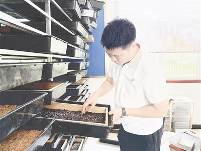 胡濱洋正在察看蟲(chóng)體生長(zhǎng)情況。